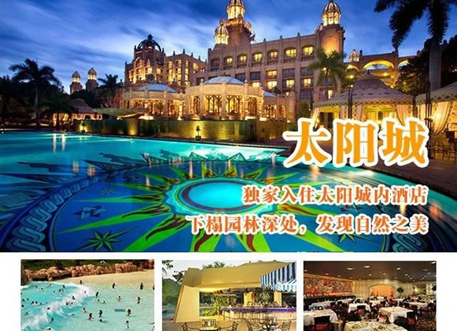 酒店早餐。前往機(jī)場(chǎng),搭乘航班飛往約堡。驅(qū)車前往南半球最大的娛樂中心-太陽(yáng)城。不曾身臨其境,便無(wú)法真正理解太陽(yáng)城給人所帶來(lái)的震撼。將古老傳說的神秘滄桑、非洲大陸的野性粗獷和現(xiàn)代生活的便利舒適那樣完美地融合在一起。你可以在失落城探尋非洲大陸上最古老的秘密,根據(jù)神話傳說興建的地震橋以及豪華賭場(chǎng)、著名的建筑-失落城等。這里有清幽的湖光山色,無(wú)數(shù)的珍禽異草,游人可漫步其中享受。(含自由活動(dòng)游覽時(shí)間約3小時(shí)) 晚餐后,入住太陽(yáng)城內(nèi)豪華酒店,您可于太陽(yáng)城內(nèi)賭場(chǎng)大顯身手。溫馨提示:約堡-太陽(yáng)城,約210公里,車程約3小時(shí)