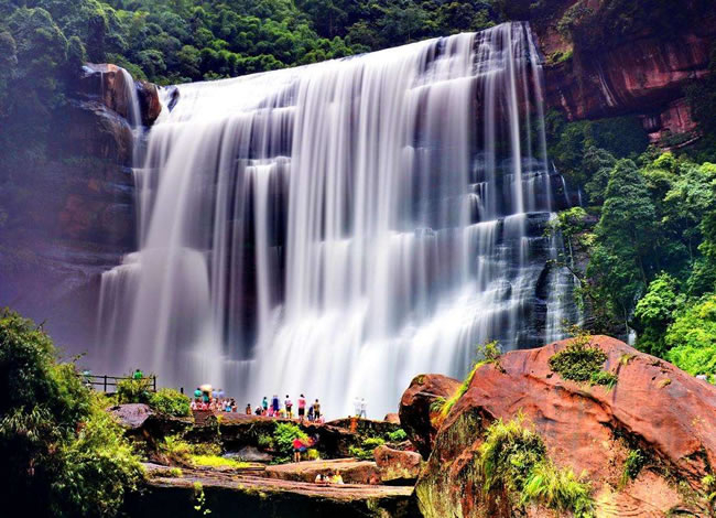早餐后前往當(dāng)?shù)厣鐣?huì)商品零售企業(yè)自由活動(dòng)并領(lǐng)精美紀(jì)念品,名特產(chǎn)品(較為著名云上赤水泰和乳膠、逸可瑞斯乳膠等,主要銷(xiāo)售乳膠制品),自由活動(dòng)后前往【赤水大瀑布】欣賞美譽(yù)中國(guó)的簾狀瀑布典型代表中洞瀑布。觀氣勢(shì)恢弘的赤水大瀑布(寬81米,高76米),是亞洲最大的瀑布,也是“世界丹霞第一瀑”,瀑水從懸崖絕壁傾瀉而下,猶如萬(wàn)馬奔騰,聲如雷鳴,水霧彌漫,陽(yáng)光下時(shí)見(jiàn)彩虹繽紛,在特定的觀景石上,奇妙的佛光環(huán)隨人移動(dòng),一人一環(huán),美不勝收。自由活動(dòng)后乘車(chē)前往【白馬溪景區(qū)】(此景點(diǎn)為旅行社贈(zèng)送景點(diǎn),若時(shí)間緊湊無(wú)法前往請(qǐng)各位旅客諒解,贈(zèng)送景點(diǎn)不予置換或退費(fèi)),(白馬溪景區(qū)內(nèi)有玻璃橋、旱滑道等娛樂(lè)項(xiàng)目,客人可根據(jù)自身情況自愿選擇自己喜歡的項(xiàng)目參加,報(bào)價(jià)不含娛樂(lè)項(xiàng)目)赤水白馬溪景區(qū)是赤水唯一家主題景區(qū),景區(qū)集有赤水旅游的5大旅游元素;瀑布景觀、丹霞景觀、竹林景觀、石斛觀光、以及活化石桫欏樹(shù)。景區(qū)原生植被繁茂,景色怡人,環(huán)境絕佳。是旅游觀光的絕佳勝地,晚餐可自費(fèi)品嘗(苗家風(fēng)情晚會(huì)120元/人),同時(shí)觀賞苗家印象激情互動(dòng)篝火晚會(huì),或自由活動(dòng)。酒店休息。